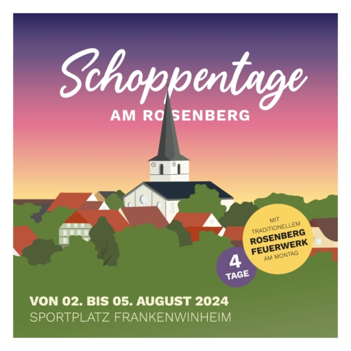 Die Schoppentage 2024 finden von Freitag, 02. August bis Montag, 05. August 2024 auf dem Frankenwinheimer Festplatz am Sportgelände des SV statt.