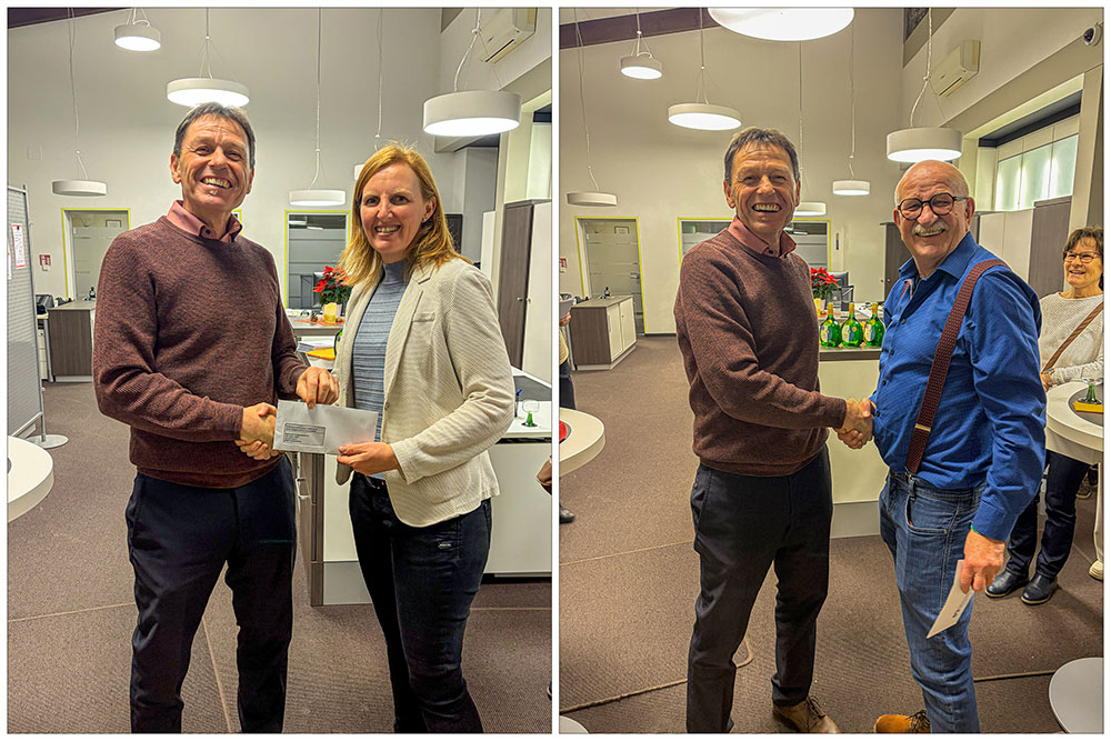 Strahlende Gesichter: 15.000 Euro verteilte die Raiffeisenbank Mainschleife-Steigerwald eG in Frankenwinheim an Vereine und kirchliche Einrichtungen im Genossenschaftsgebiet der Bank. Die Bilder zeigen die Vereinsvorstände/-Vertreter bei der Spendenübergabe mit der Gebietsdirektorin Andrea Helbig.