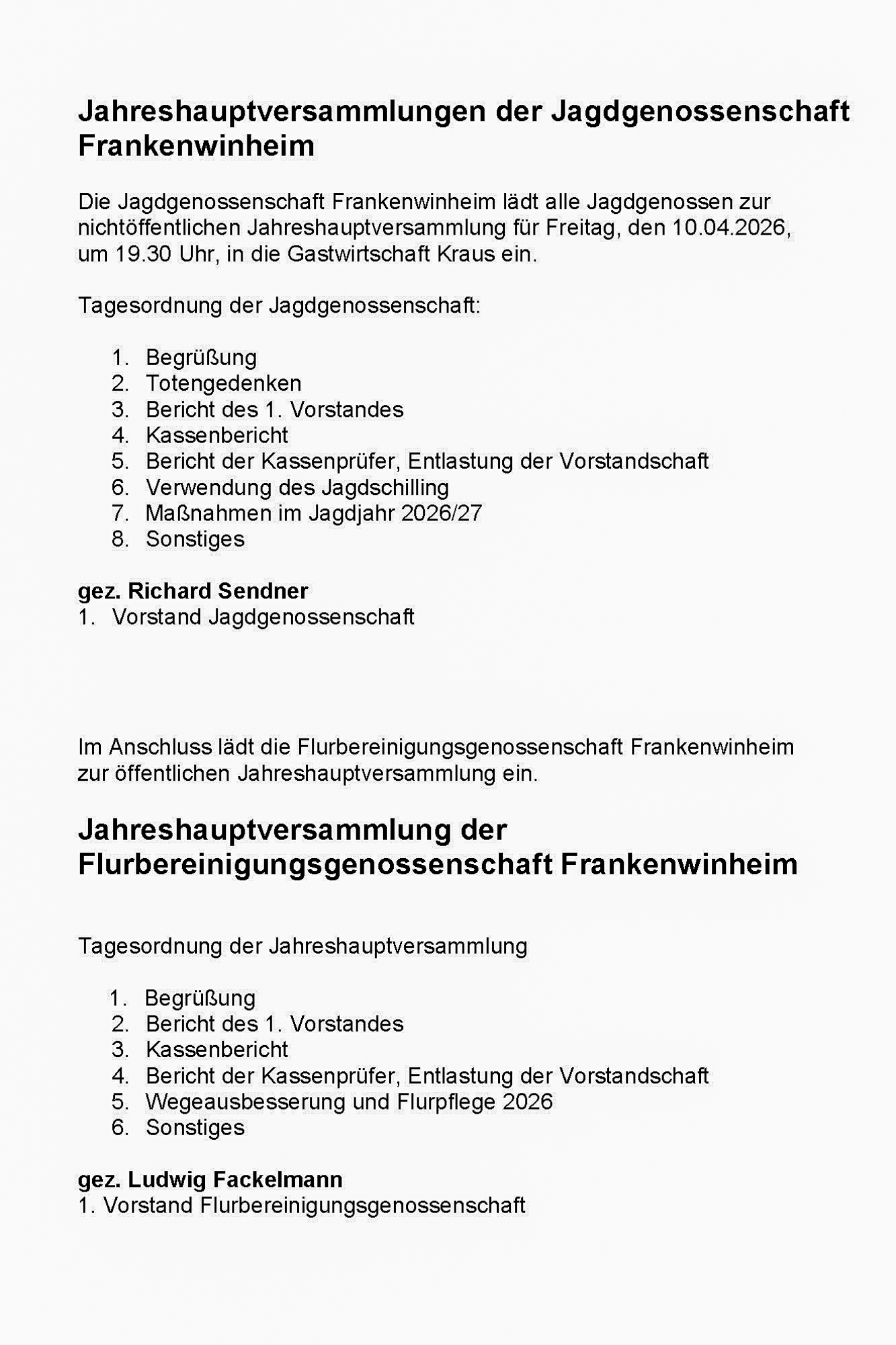 gez. Richard Sendner (1. Vorstand)