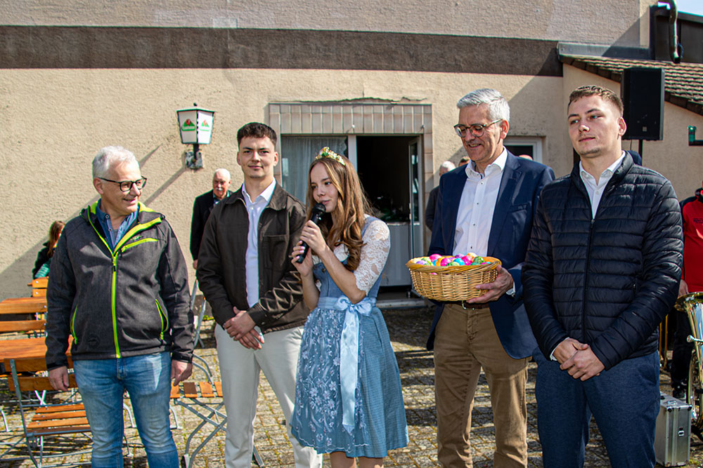 Hannes Bauer aus der SV-Vorstandschaft konnte zahlreiche Kinder mit ihren Eltern, Einheimische und auch einige Gäste begrüßen. Auch Bürgermeister Herbert Fröhlich freute sich über den guten Zuspruch. Anschließend gab Weinprinzessin Marilina Walter den Startschuss zur Ostereiersuche. Mit viel jugendlichem Elan meisterte sie ihre erste Amtshandlung hervorragend.