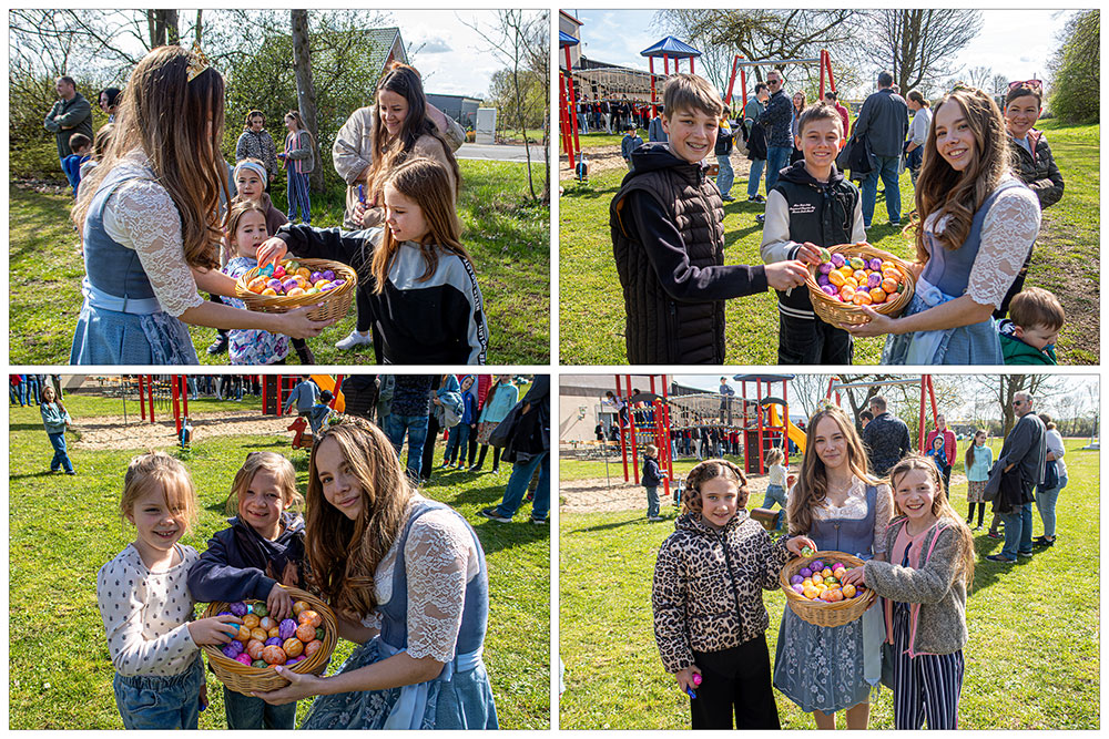 Die Kinder machten sich sofort begeistert auf die Suche nach den versteckten Süßigkeiten und wurden natürlich schnell fündig. Wer danach noch mehr Osterfreude wollte, konnte sich bei der Weinprinzessin zusätzlich ein Osterei abholen – ein Angebot, das nicht nur die Kinder gerne nutzten.