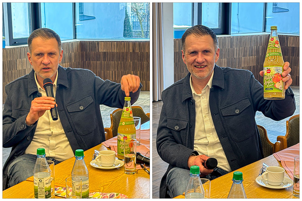 Im Mittelpunkt des Nachmittags stand die spannende Geschichte hinter dem Hörspiel „Wie der Apfel in die Flasche kam“ , das von zahlreichen Mitwirkenden aus der Region gestaltet wurde. Stefan Menz erläuterte, wie es zur Idee kam, wer beteiligt war und welche Herausforderungen bei der Produktion zu bewältigen waren. Mitwirkende waren unter anderem Pfarrer Stefan Mai, Silvia Kirchhof, Weihbischof Paul Reder, DFB-Schiedsrichter Benjamin Brand sowie Mitglieder der bekannten fränkischen Gruppe „Häisd’n däisd vomm Mee“, „Inge und Rita“ sowie Sieglinde Fackelman. Besonders erfreulich sei, so Menz, dass mit Stefan und Florian Ebert sowie Sieglinde Fackelmann auch Frankenwinheimer Stimmen im Hörspiel zu hören sind.