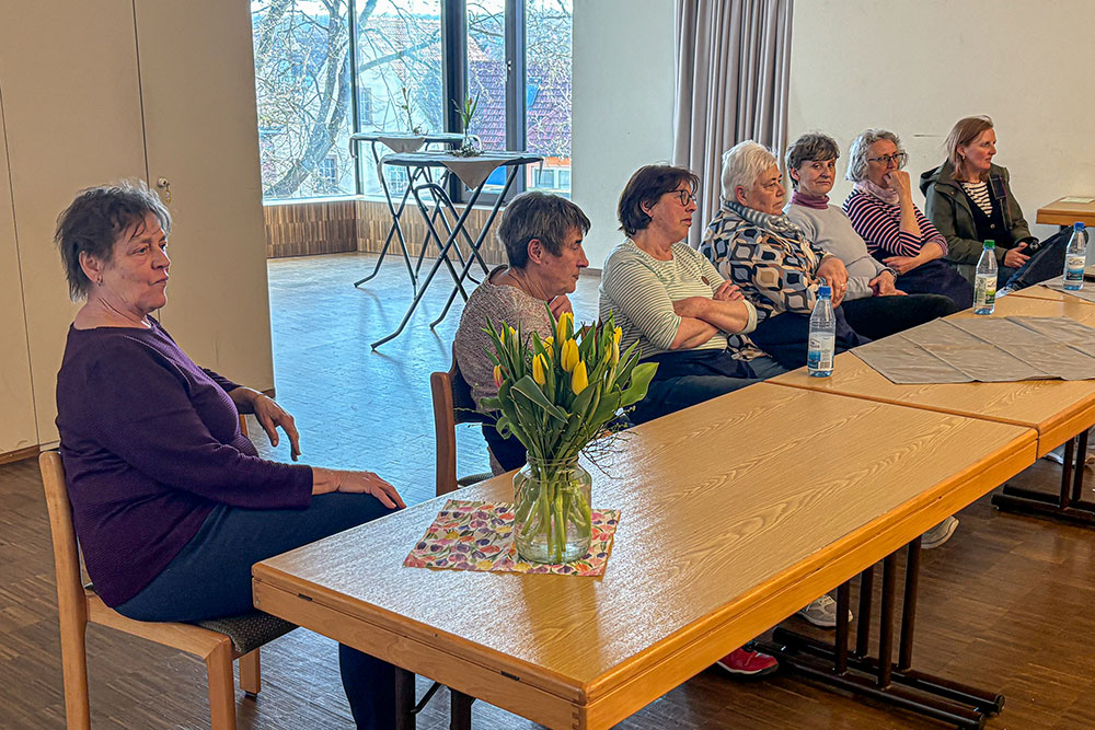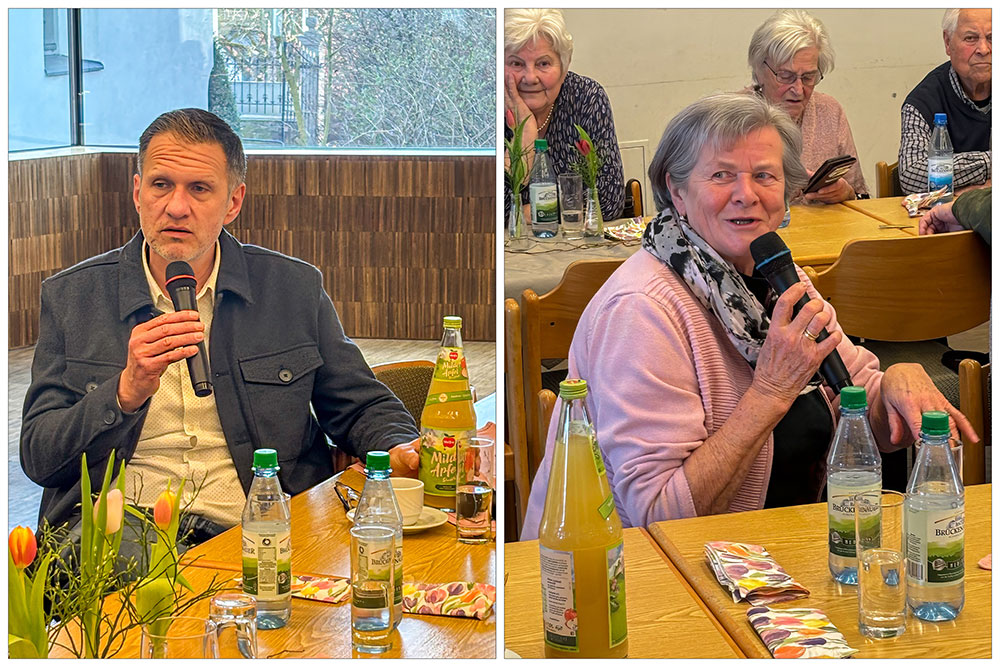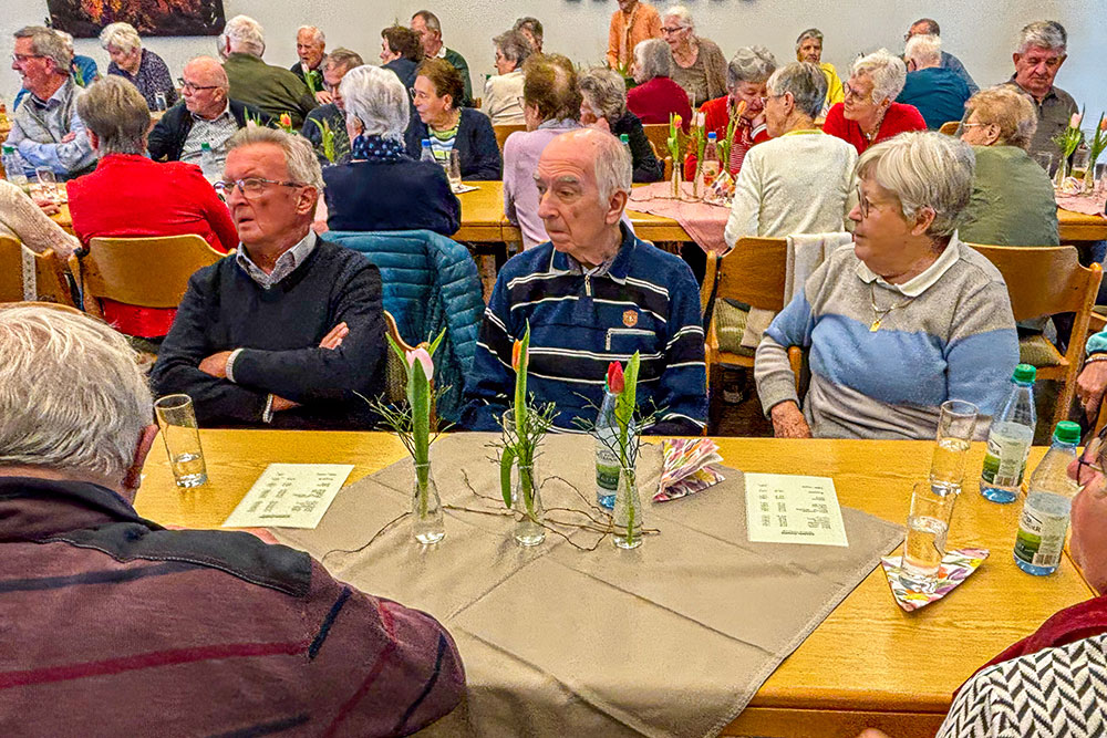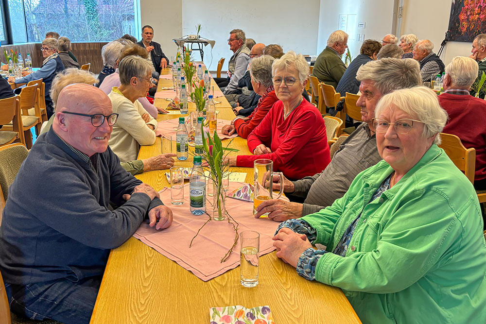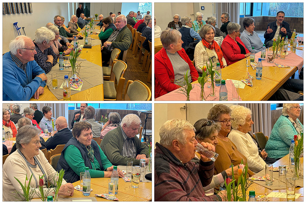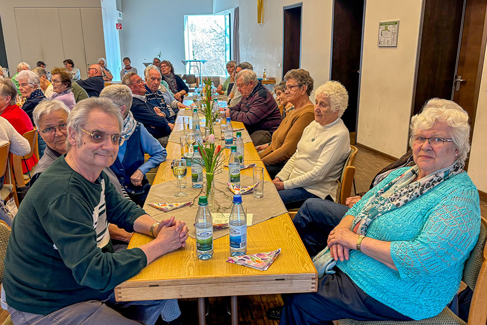 Beim Seniorennachmittag am 12. März 2026 konnte Seniorenkreis-Leiter Otto Barthelme rund 65 Besucherinnen und Besucher begrüßen. Besonders willkommen hieß er den Referenten des Tages, Kreisheimatpfleger Stefan Menz, der über die Entstehung des Hörspiels „Wie der Apfel in die Flasche kam“ berichtete. Pfarrer Matthias Konrad konnte leider krankheitsbedingt nicht teilnehmen. Die Anwesenden ließen ihm die besten Genesungswünsche zukommen.
