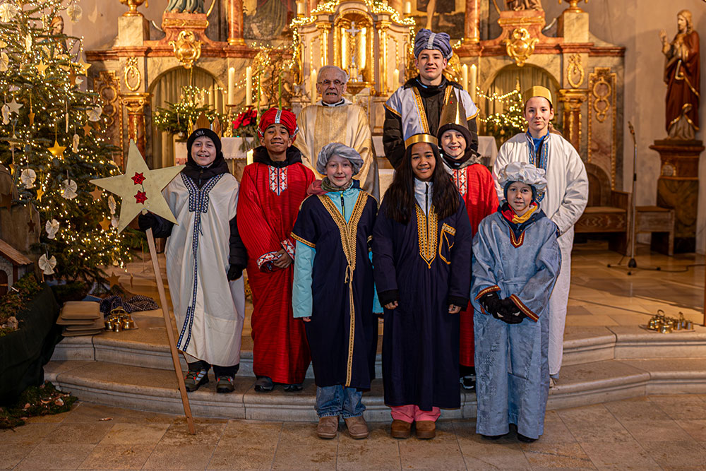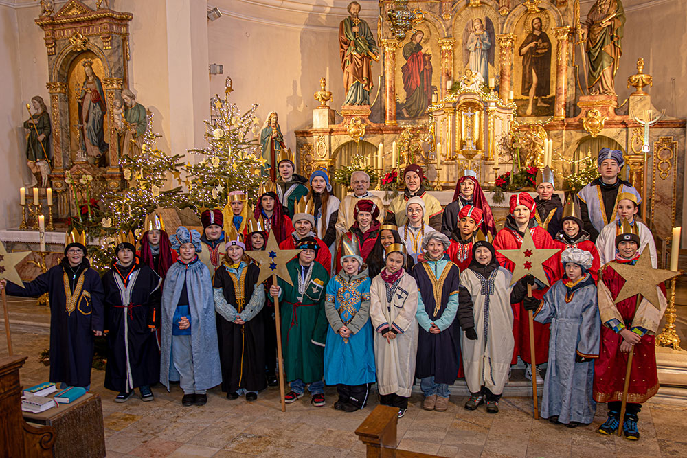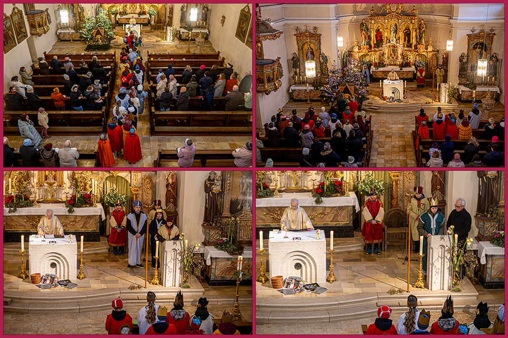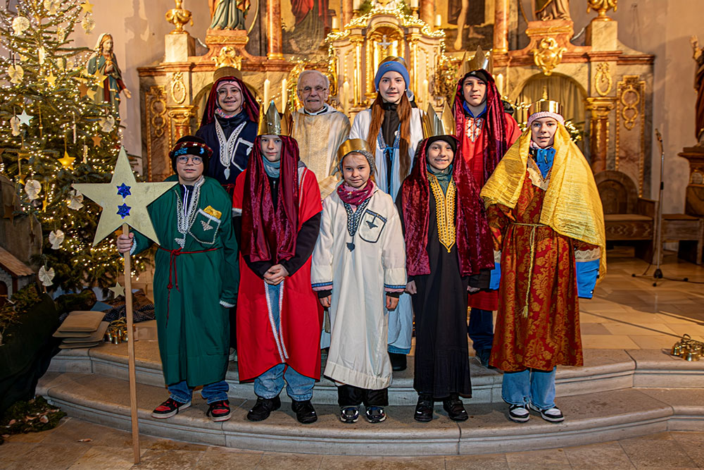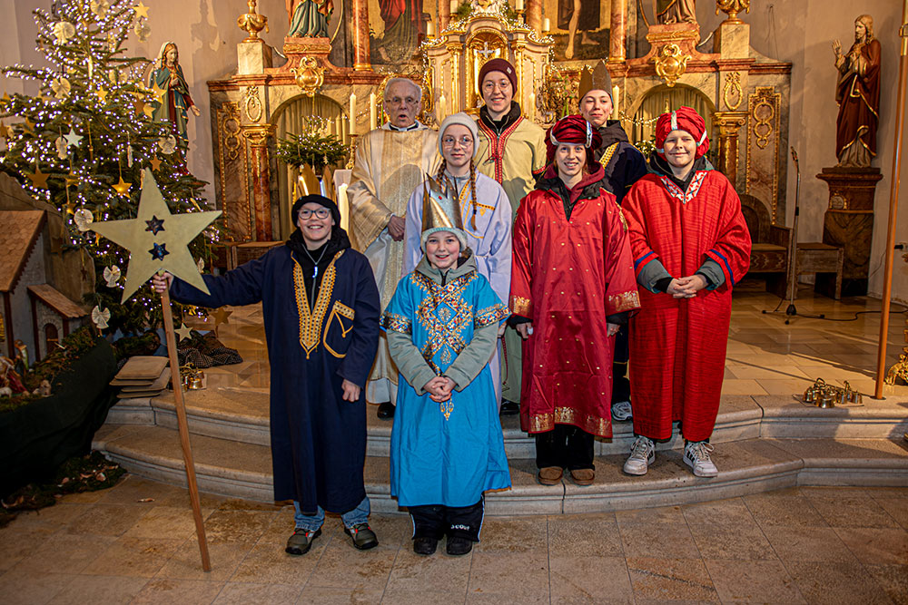 Auch in Frankenwinheim und Brünnstadt wurden die Sternsinger in einem gut besuchten Gottesdienst am Dienstag, 6. Januar 2026, feierlich ausgesandt. Pfarrer i. R. Matthias Konrad gab den Kindern und Jugendlichen den Auftrag mit auf den Weg, Gottes Segen in die Häuser zu bringen, sichtbar im Segenszeichen (20*C+M+B*26 / Christus Mansionem Benedicat / Christus segne dieses Haus) und zugleich Spenden für das Kindermissionswerk zu sammeln. Die diesjährige Sternsingeraktion stand unter dem Motto „Sternsingen gegen Kinderarbeit“ mit dem Schwerpunktland Bangladesch.