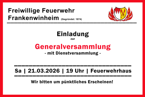 Einladung zur GV der FFW am 21.03.2026